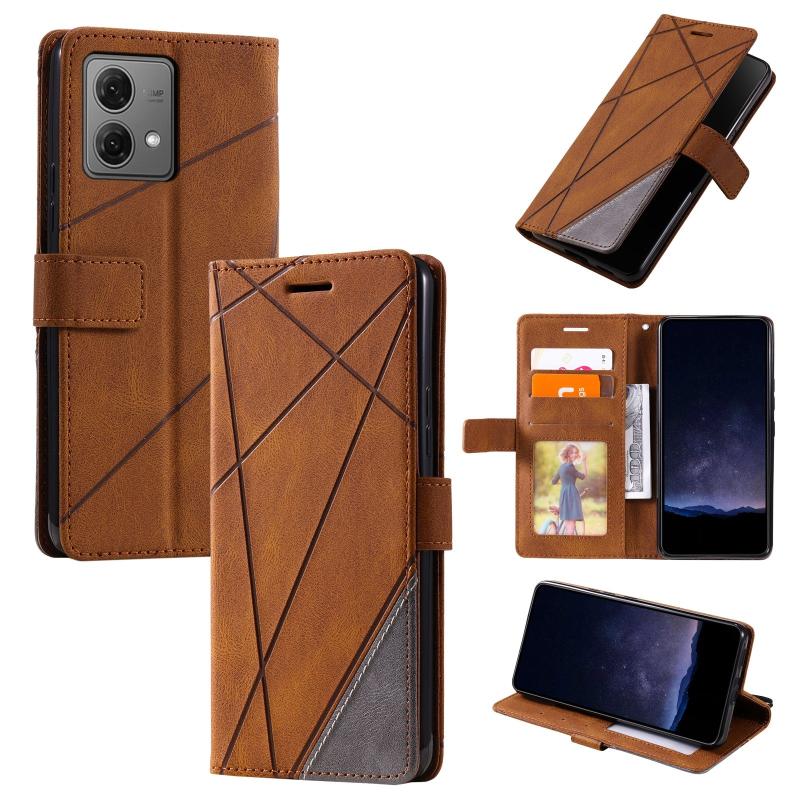 For Motorola Edge 40 Neo Skin Feel Splicing Leather Phone Case(Brown)