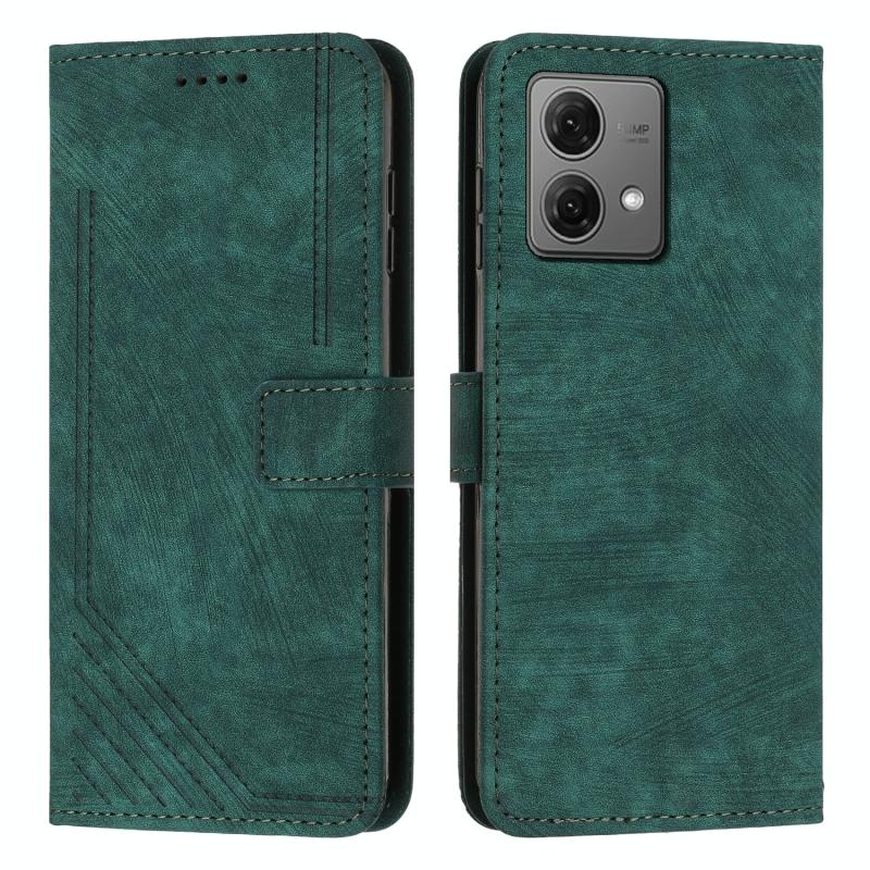 For Motorola Edge 40 Neo Skin Feel Stripe Pattern Leather Phone Case with Lanyard(Green)