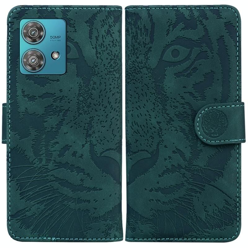 Θήκη τηλεφώνου δερμάτινη με ανάγλυφο μοτίβο τίγρης για Motorola Edge 40 Neo (πράσινο)