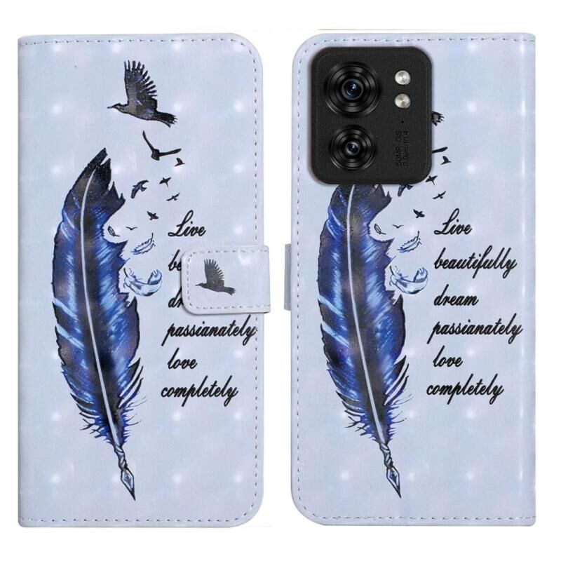 Θήκη κινητού τηλεφώνου δερμάτινη με ανάγλυφο σχέδιο 3D για Motorola Edge 40 (Μπλε Φτερό)