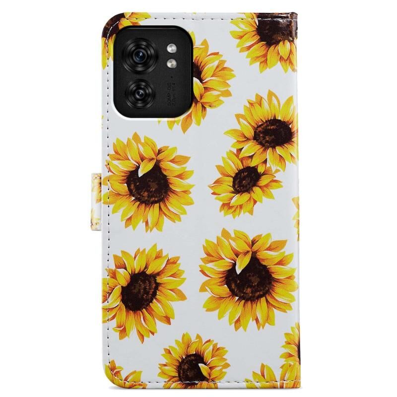 Θήκη τηλεφώνου δερμάτινη, οριζόντια αναδιπλούμενη για Motorola Edge 40 με ζωγραφιστό σχέδιο (Ηλίανθος)