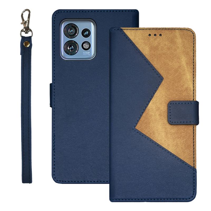 For Motorola Edge 40 Pro 5G idewei Two-color Splicing Leather Phone Case(Blue) (idewei)