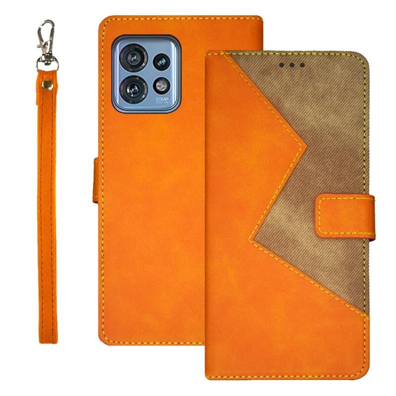 Για Motorola Edge 40 Pro 5G idewei Δερμάτινη Θήκη Τηλεφώνου με Διχρωμία (Πράσινο) (Πορτοκαλί)