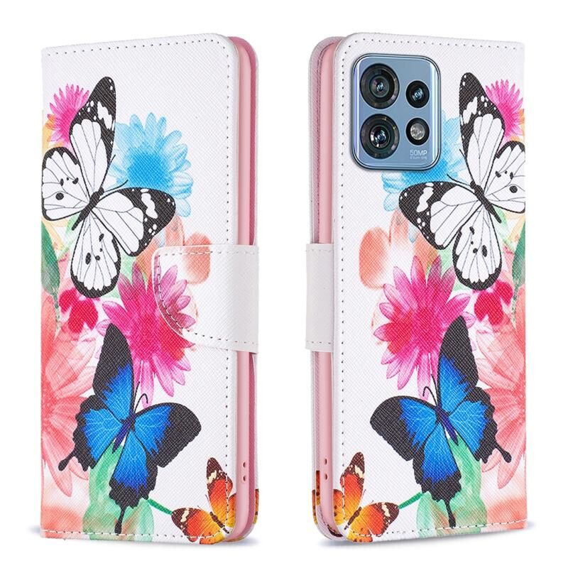 Θήκη τηλεφώνου από δέρμα με έγχρωμο σχέδιο (πεταλούδες) για Motorola Edge 40 Pro 5G / Moto X40/X40 Pro.