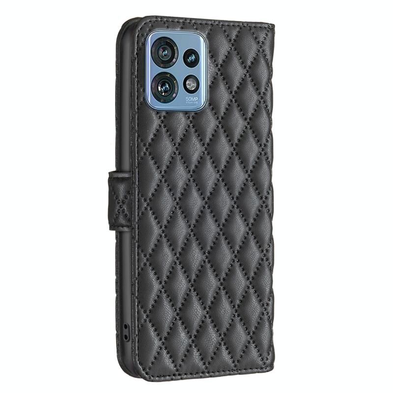 Για Motorola Edge 40 Pro 5G / Moto X40 / X40 Pro Diamond Lattice Wallet Flip δερμάτινη θήκη τηλεφώνου (Μαύρο)