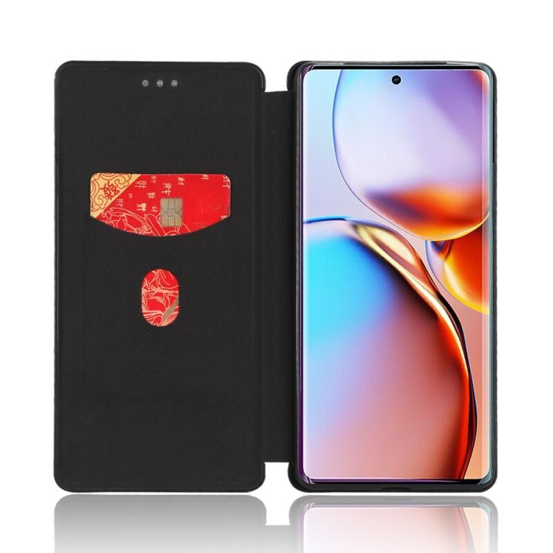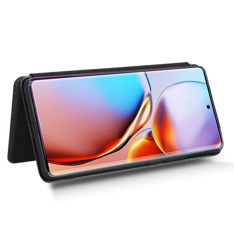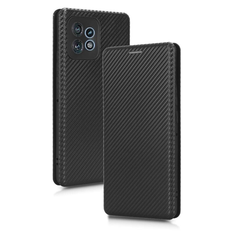 Θήκη τηλεφώνου από δέρμα με αναδιπλούμενο σχέδιο για Motorola Edge 40 Pro, υφή ανθρακονημάτων (Μαύρο)