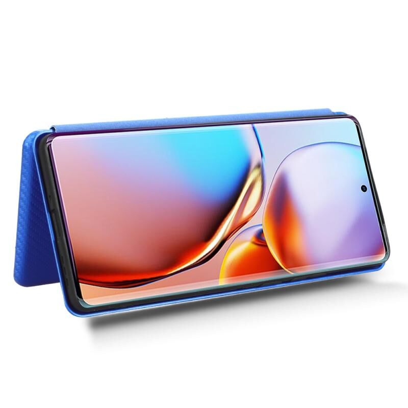 Θήκη τηλεφώνου από δέρμα με αναδιπλούμενο σχέδιο για Motorola Edge 40 Pro, υφή ανθρακονημάτων (Μπλε)