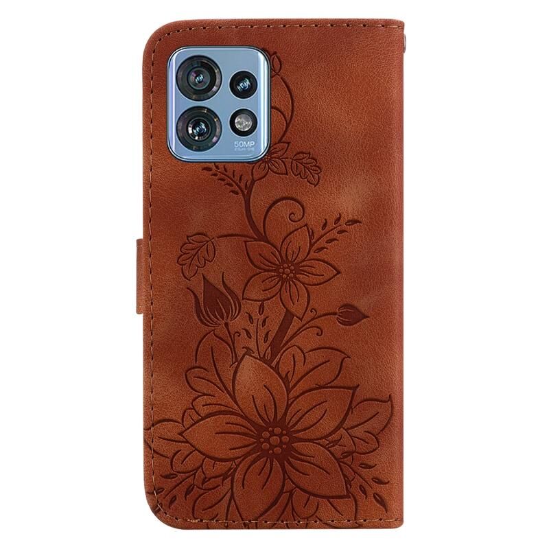 Θήκη τηλεφώνου από δέρμα με ανάγλυφο Lily για Motorola Edge 40 Pro (Πράσινο)