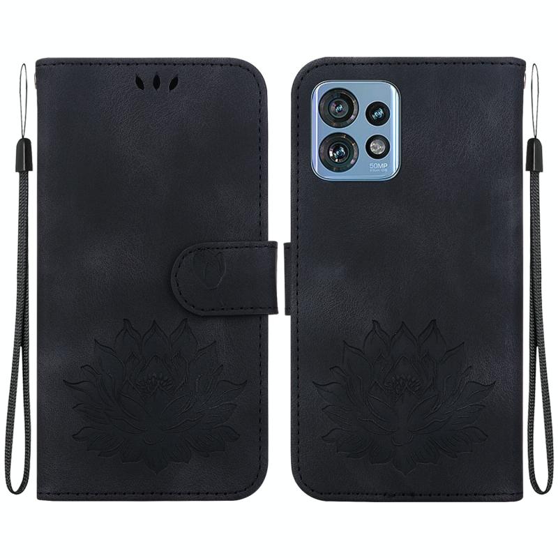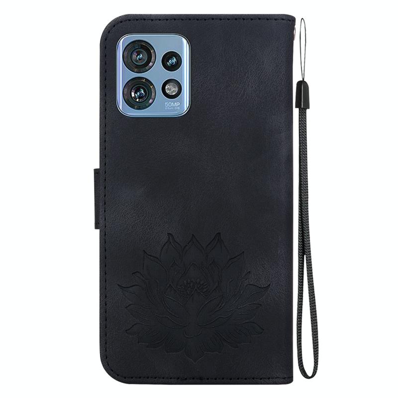 For Motorola Edge 40 Pro Lotus Embossed Leather Phone Case(Black)