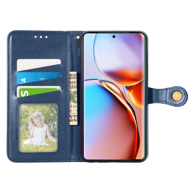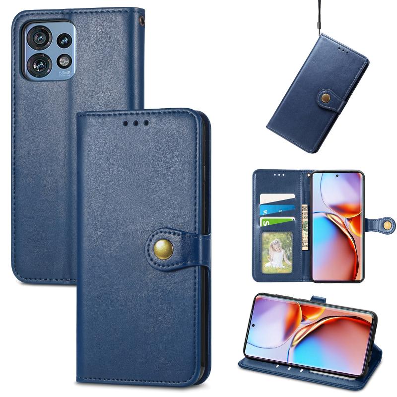 Θήκη Motorola Edge 40 Pro Δερμάτινη με Αγκράφα, Retro Στερεό Χρώμα (Μπλε)