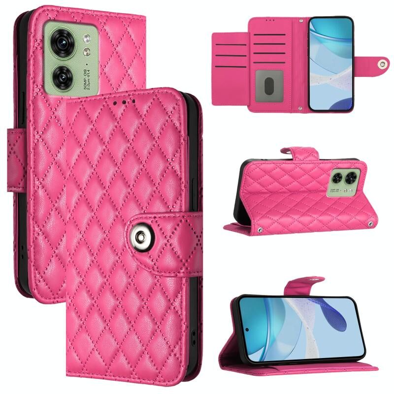 Για Motorola Edge 40 Rhombic Texture Flip δερμάτινη θήκη τηλεφώνου με κορδόνι (Rose Red)