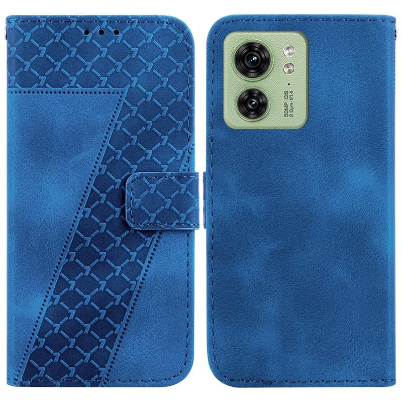 For Motorola Edge 40 Seven-shaped Embossed Leather Phone Case(Blue)