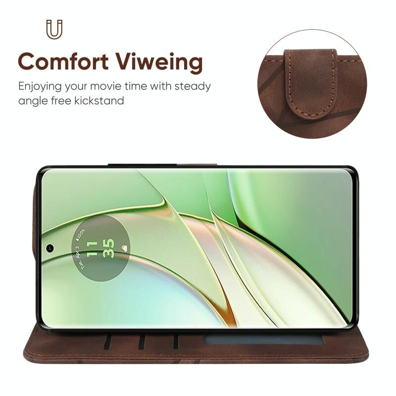 Για Motorola Edge 40 Skin Feel γεωμετρικές γραμμές δερμάτινη θήκη τηλεφώνου (καφέ)