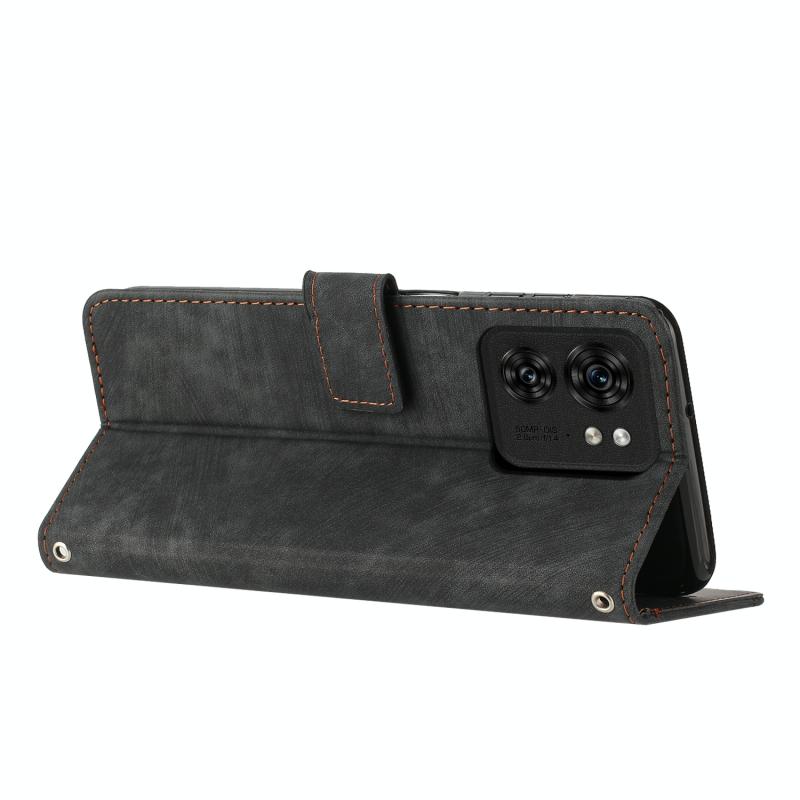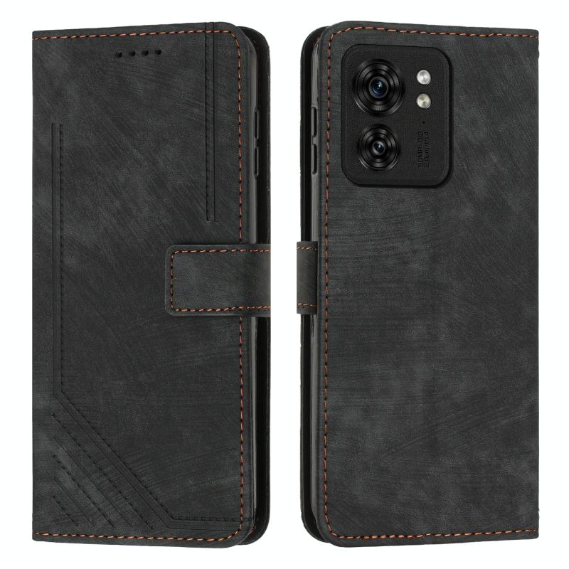 For Motorola Edge 40 Skin Feel Stripe Pattern Leather Phone Case with Lanyard(Black)