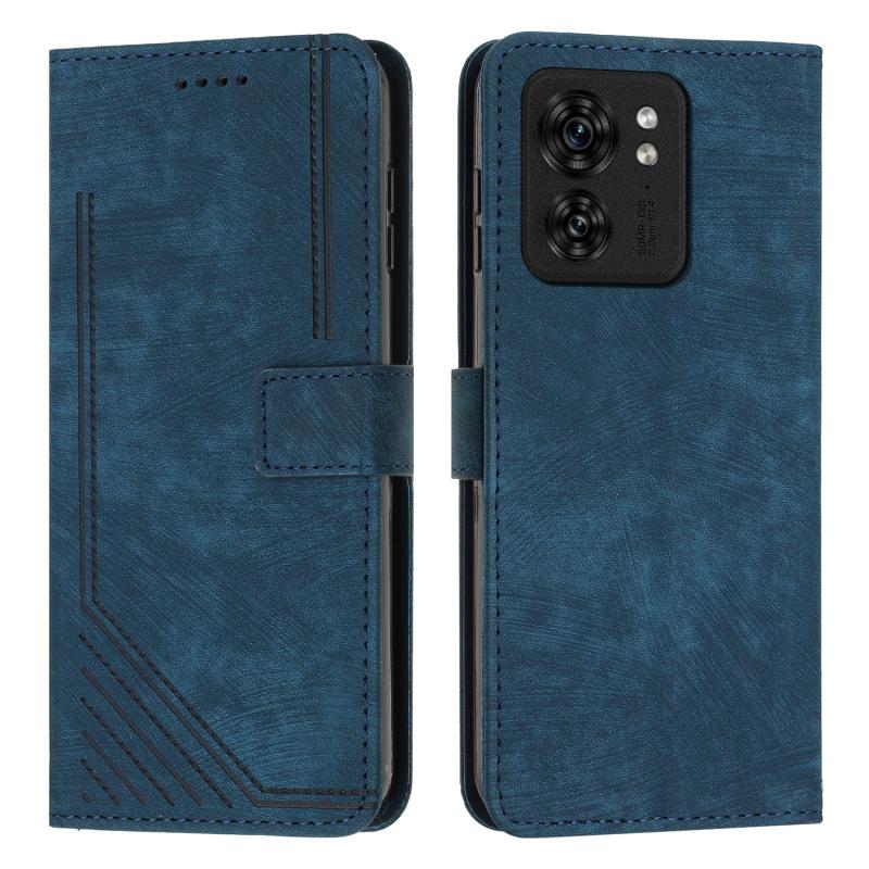 For Motorola Edge 40 Skin Feel Stripe Pattern Leather Phone Case with Lanyard(Blue)