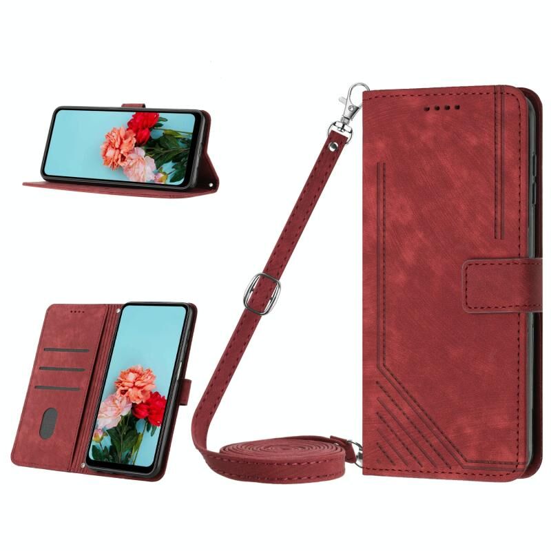 For Motorola Edge 40 Skin Feel Stripe Pattern Leather Phone Case with Lanyard(Red)