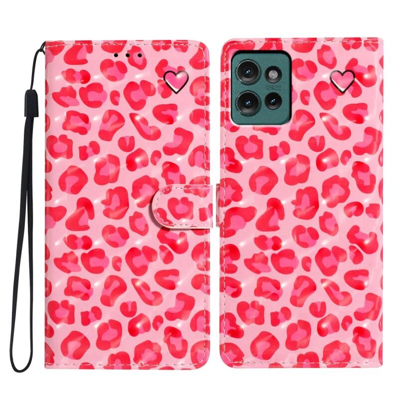 Θήκη τηλεφώνου από δέρμα με 3D σχέδιο για Motorola Edge 50 (3D Ροζ Μπλε Μάρμαρο)