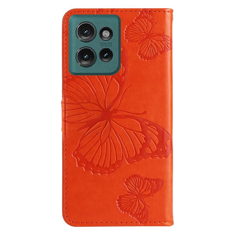 Για Motorola Edge 50 5G 3D πεταλούδα ανάγλυφο μοτίβο Flip υπόθεση τηλεφώνου δέρμα (πορτοκαλί)