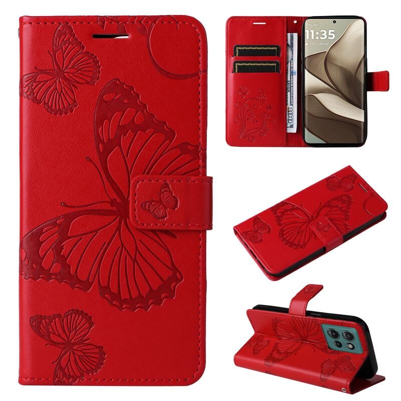 Για Motorola Edge 50 5G 3D πεταλούδα ανάγλυφο μοτίβο Flip υπόθεση τηλεφώνου δέρμα (κόκκινο)
