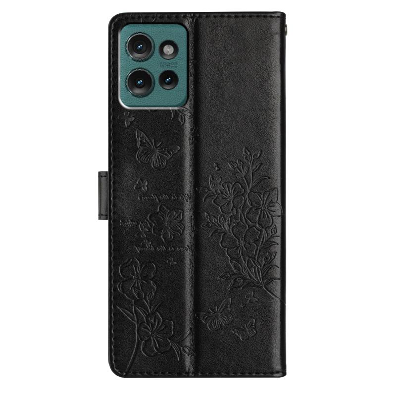 For Motorola Edge 50 5G Butterflies and Flowers Leather Phone Case(Black)