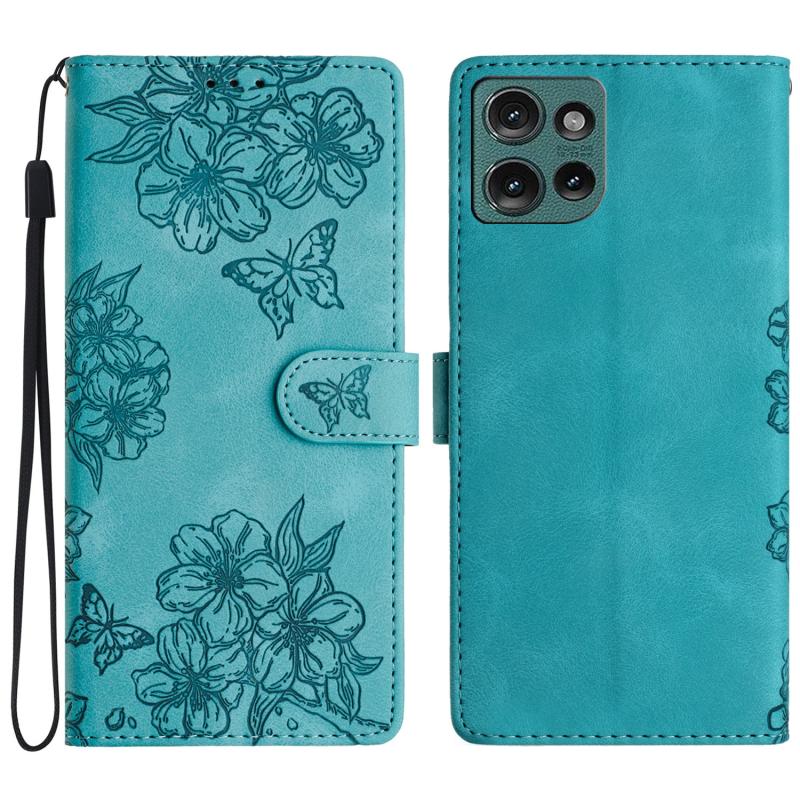 For Motorola Edge 50 5G Cherry Blossom Butterfly Skin Feel Embossed PU Phone Case(Green)