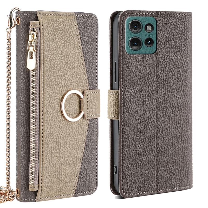 For Motorola Edge 50 5G Crossbody Litchi Texture Leather Phone Case(Grey)