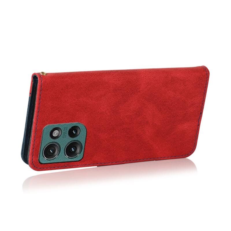 Για Motorola Edge 50 5G Διπλό χρώμα ραφή δερμάτινη θήκη τηλεφώνου (κόκκινο μπλε)