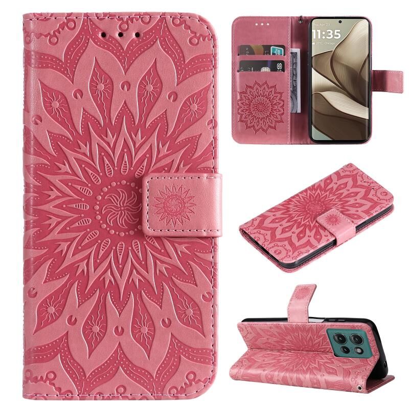 Θήκη τηλεφώνου από δέρμα με σχέδιο ηλιοτροπίου σε ανάγλυφο για Motorola Edge 50 5G (Καφέ)