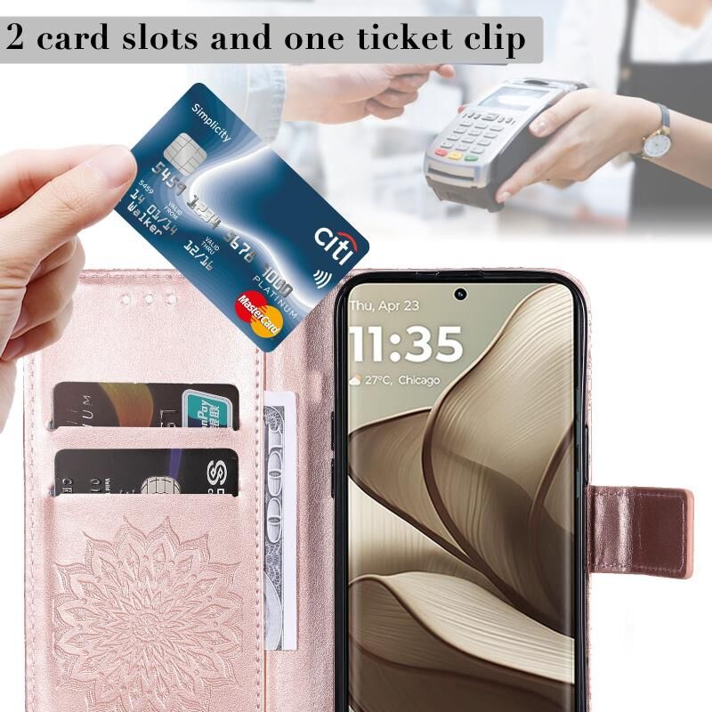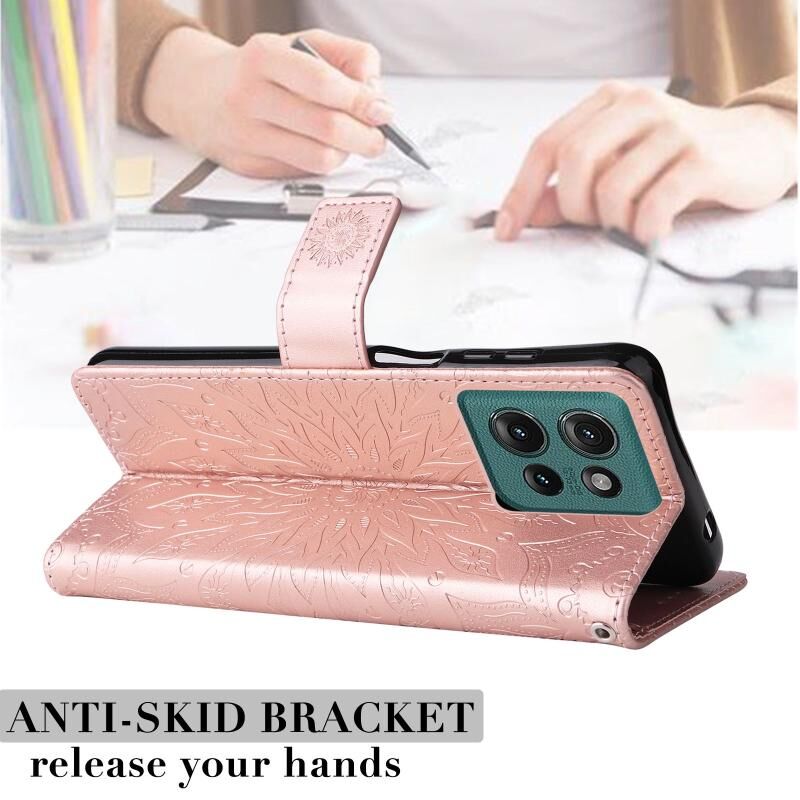 Θήκη τηλεφώνου από δέρμα με σχέδιο ηλιοτροπίου σε ανάγλυφο για Motorola Edge 50 5G (Καφέ)
