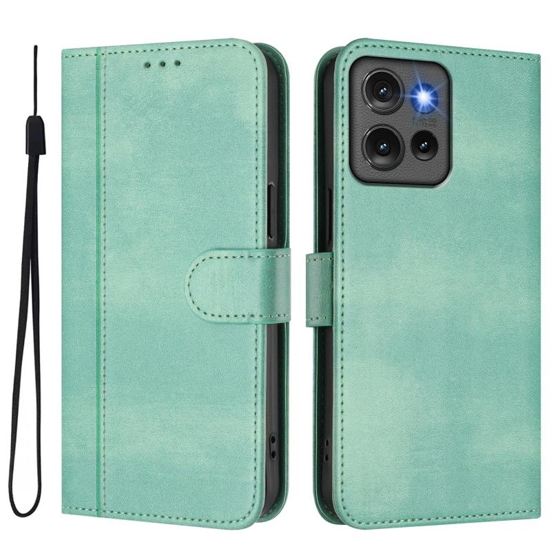 For Motorola Edge 50 5G Global Line Splicing Buckle Retro Leather Phone Case(Mint)