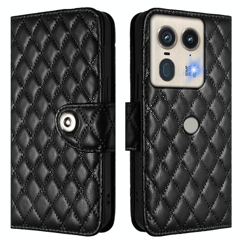Για Motorola Edge 50 5G Global Rhombic Texture Flip δερμάτινη θήκη τηλεφώνου με κορδόνι (μαύρο)