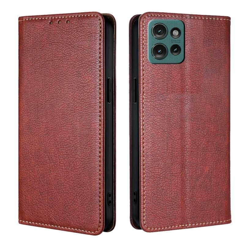 Για Motorola Edge 50 5G γυαλιστερό λάδι στερεό χρώμα μαγνητική δερμάτινη θήκη τηλεφώνου (καφέ)