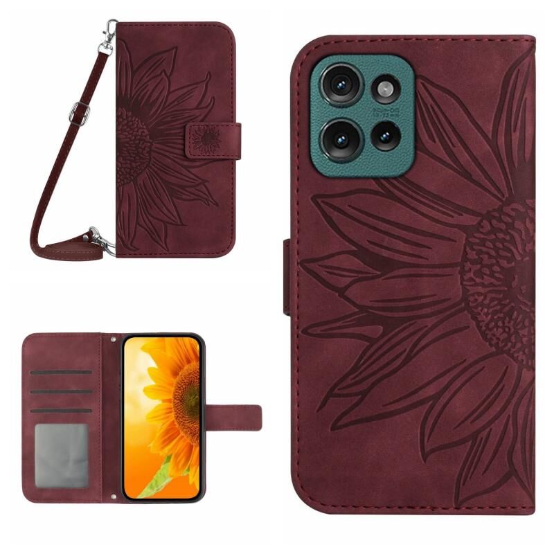 Για Motorola Edge 50 5G HT04 Skin Feel Sun Flower ανάγλυφο ανάγλυφο Flip δερμάτινη θήκη τηλεφώνου με κορδόνι (κόκκινο κρασί)