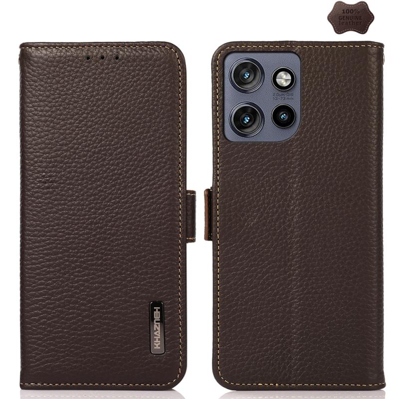 For Motorola Edge 50 5G KHAZNEH Side-Magnetic Litchi Genuine Leather RFID Phone Case(Brown)