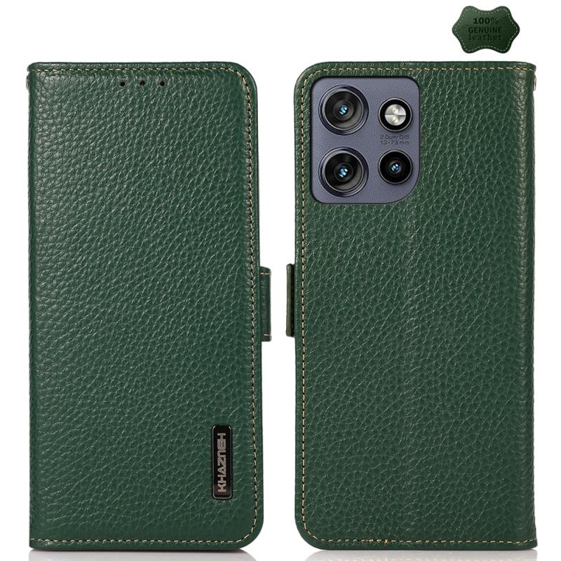 For Motorola Edge 50 5G KHAZNEH Side-Magnetic Litchi Genuine Leather RFID Phone Case(Green)