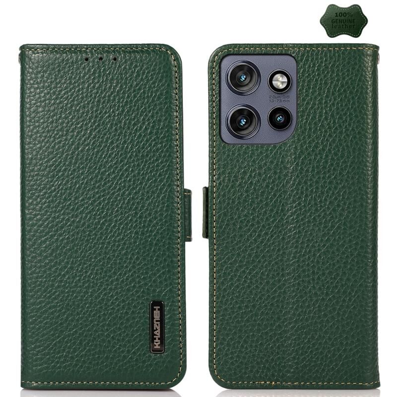 Θήκη τηλεφώνου Motorola Edge 50 5G KHAZNEH, Μαγνητική πλευρική, Γνήσιο δέρμα Litchi, RFID (Μαύρο)