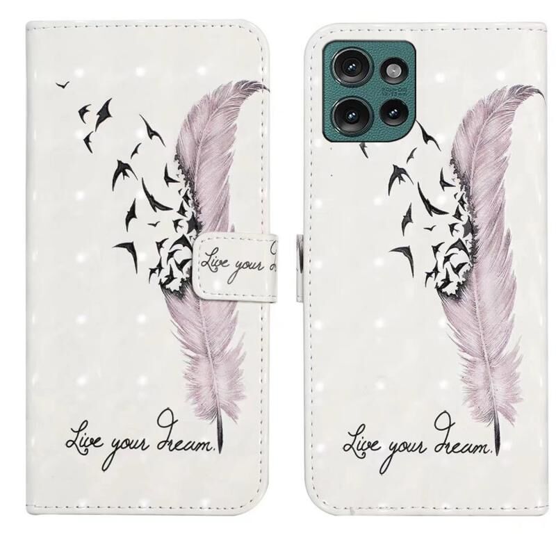 Θήκη τηλεφώνου δερμάτινη με ανάγλυφο σχέδιο λαδιού 3D για Motorola Edge 50 5G (Φτερό)
