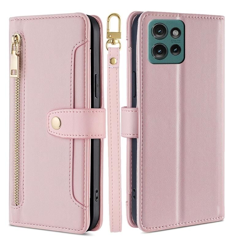 Για Motorola Edge 50 5G Πρόβατο υφή Cross-body φερμουάρ πορτοφόλι δερμάτινη θήκη τηλεφώνου (ροζ)