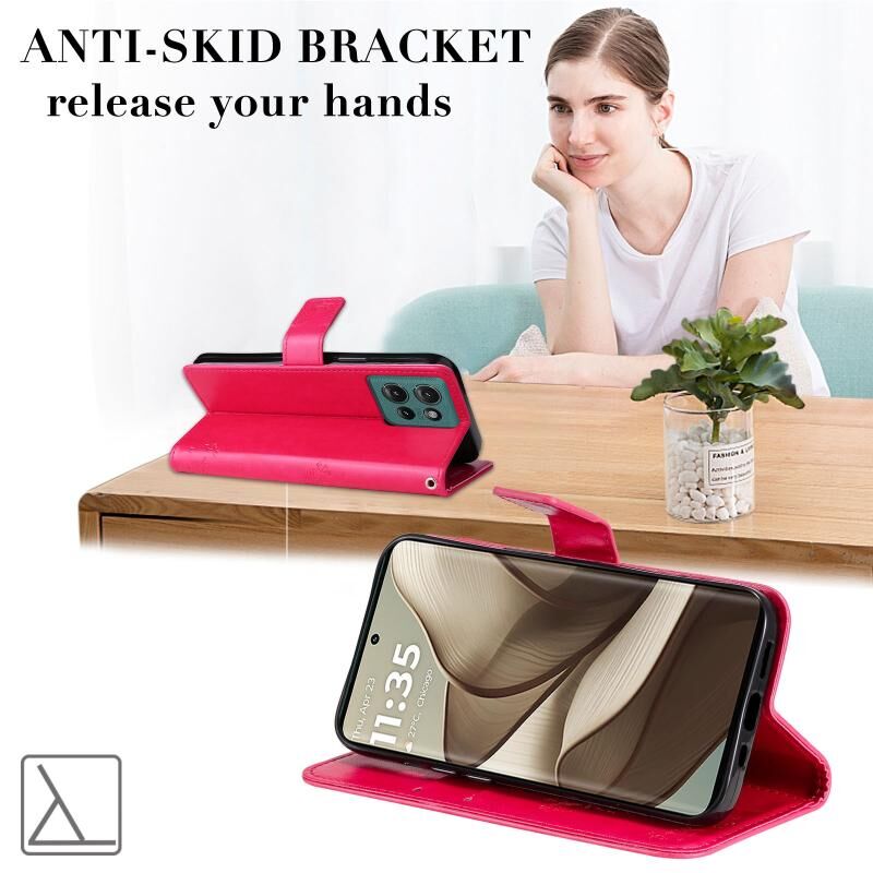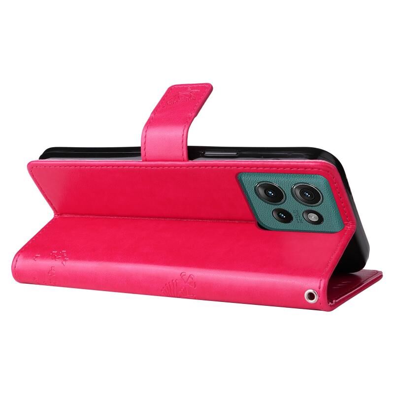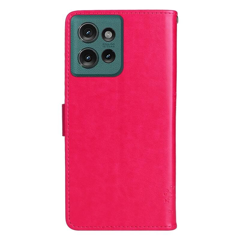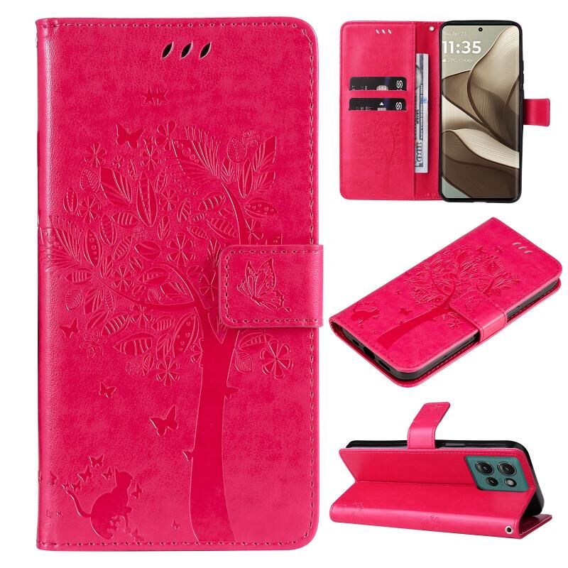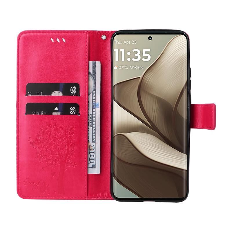 Θήκη τηλεφώνου από δέρμα με σχέδιο αναγλύφου δέντρου & γάτας για Motorola Edge 50 5G (Ροζ)
