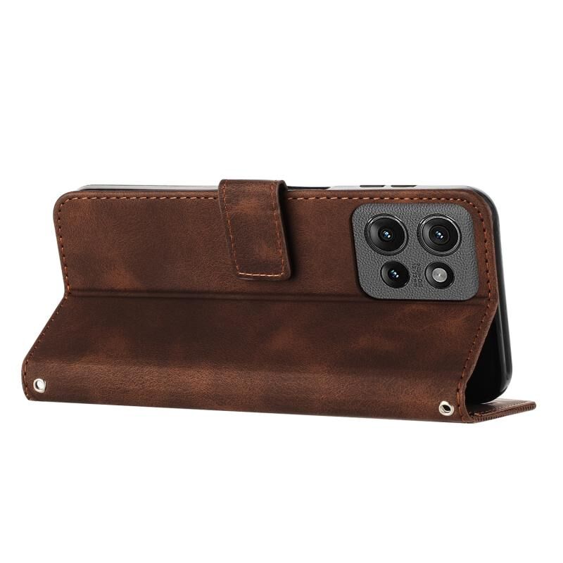 Για Motorola Edge 50 Dream Triangle Δερμάτινη θήκη τηλεφώνου με κορδόνι (καφέ)