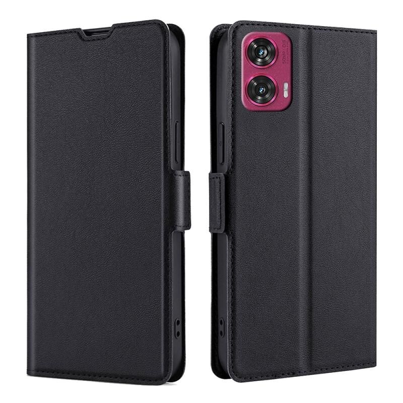 Θήκη τηλεφώνου δέρμα Flip οριζόντια με πλευρική αγκράφα τάσης, εξαιρετικά λεπτή για Motorola Edge 50 Fusion 5G (Μαύρο)