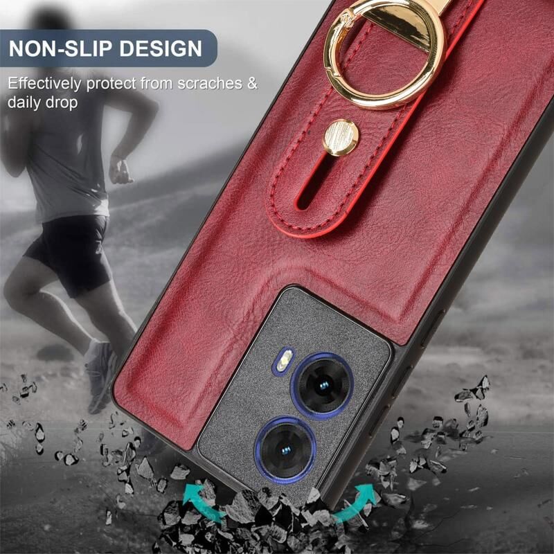 Για Motorola Edge 50 Fusion 5G Wristband δέρμα πίσω θήκη τηλεφώνου (κόκκινο)