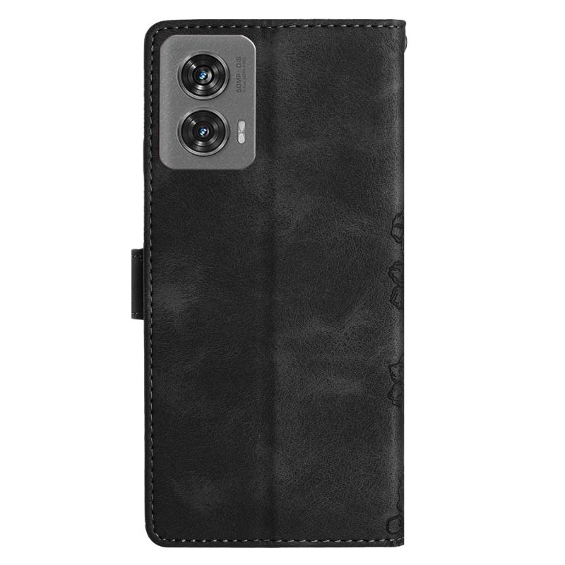 For Motorola Edge 50 Fusion Cherry Blossom Butterfly Skin Feel Embossed PU Phone Case(Black)