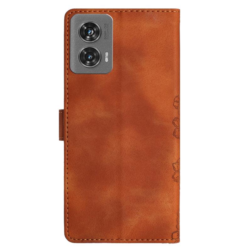 For Motorola Edge 50 Fusion Cherry Blossom Butterfly Skin Feel Embossed PU Phone Case(Brown)