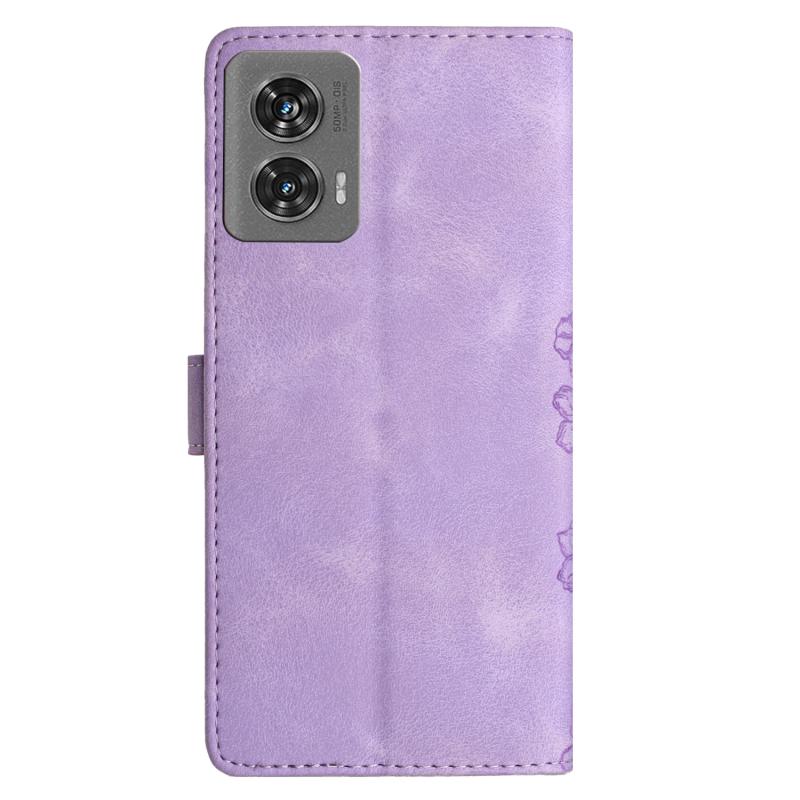 For Motorola Edge 50 Fusion Cherry Blossom Butterfly Skin Feel Embossed PU Phone Case(Purple)
