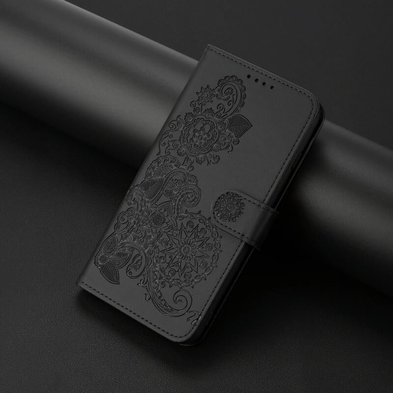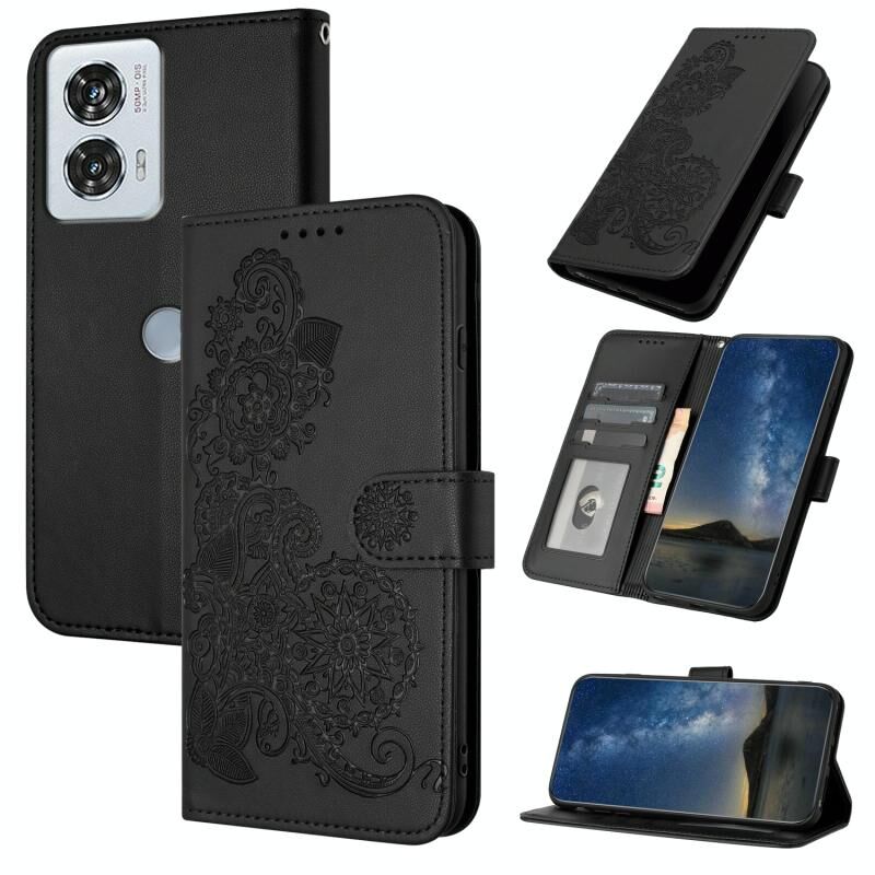 Για Motorola Edge 50 Fusion Datura λουλούδι ανάγλυφο ανάγλυφο Flip δέρμα τηλέφωνο υπόθεση (μαύρο)