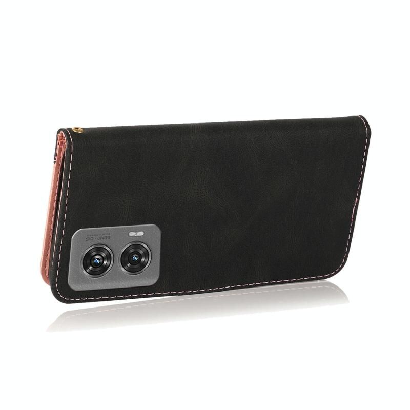 Για Motorola Edge 50 Fusion Διπλό χρώμα ραφή δερμάτινη θήκη τηλεφώνου (μαύρο ροζ χρυσό)