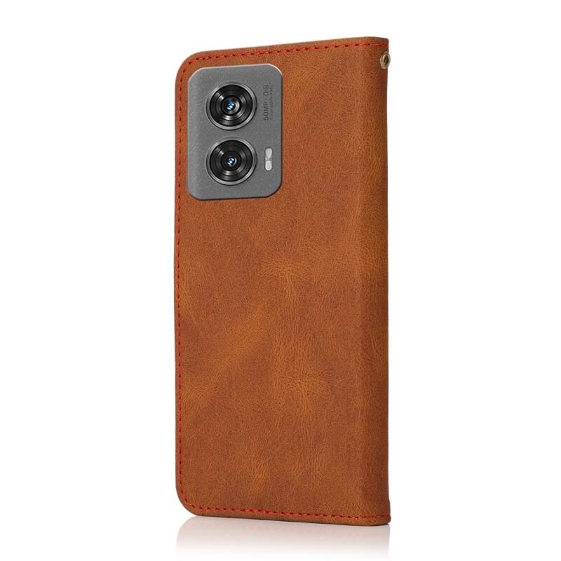 Για Motorola Edge 50 Fusion Διπλό χρώμα ραφή δερμάτινη θήκη τηλεφώνου (καφέ κόκκινο)