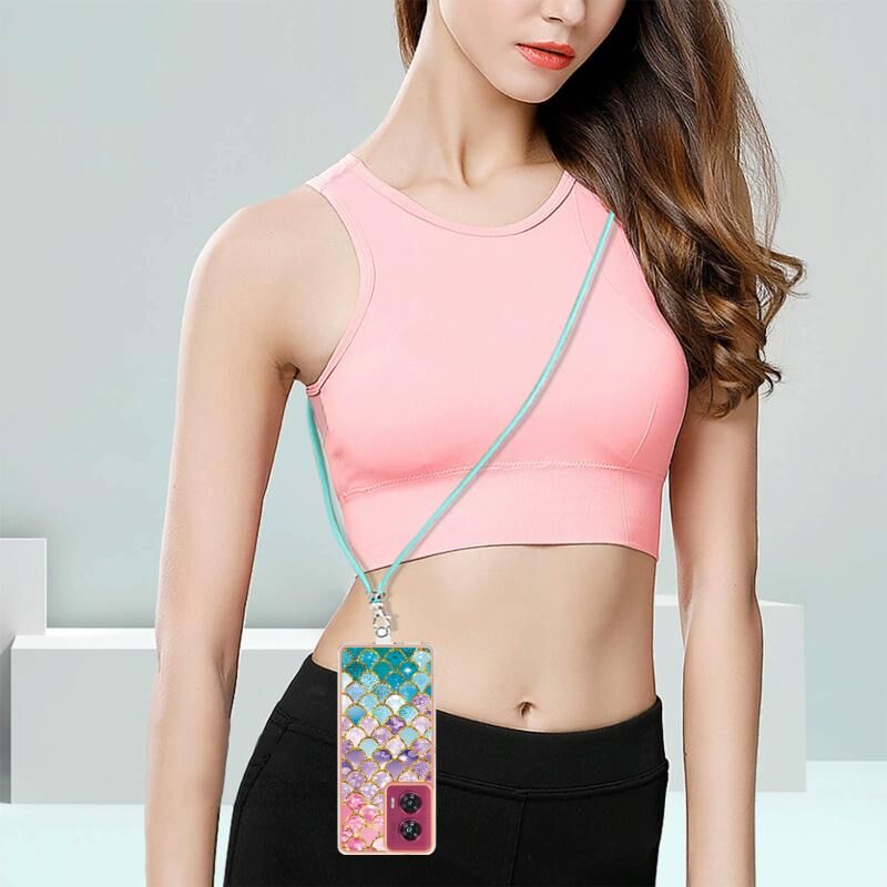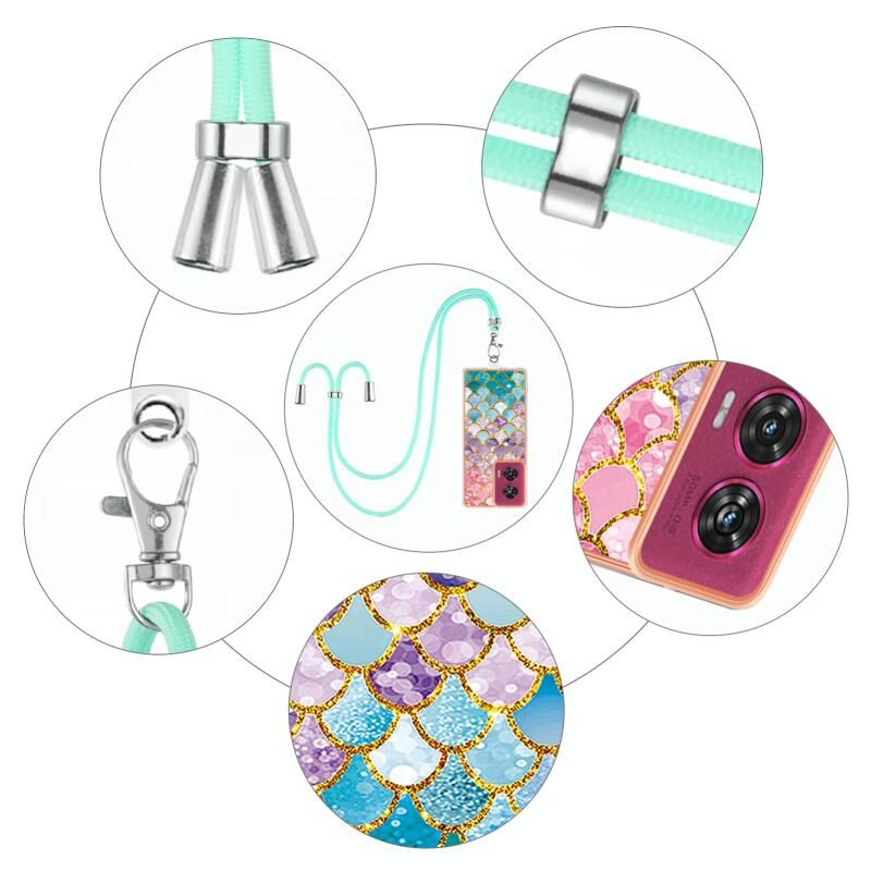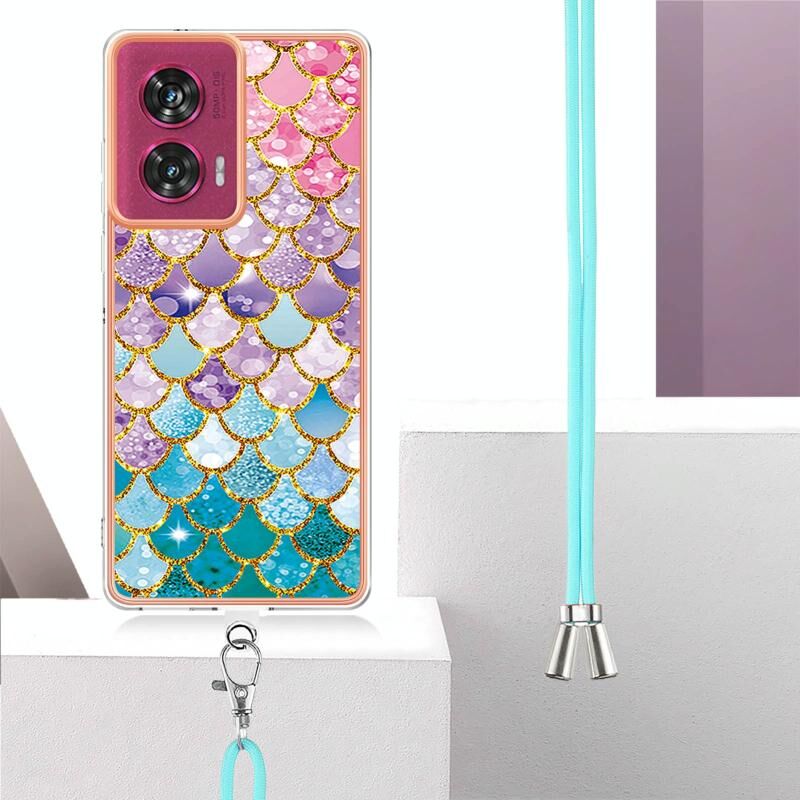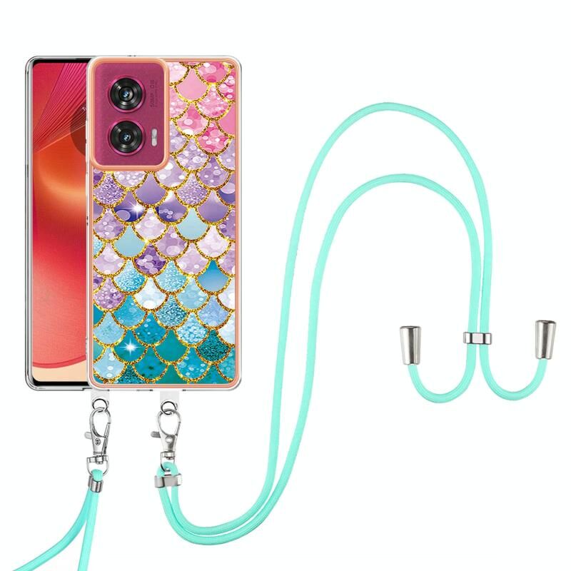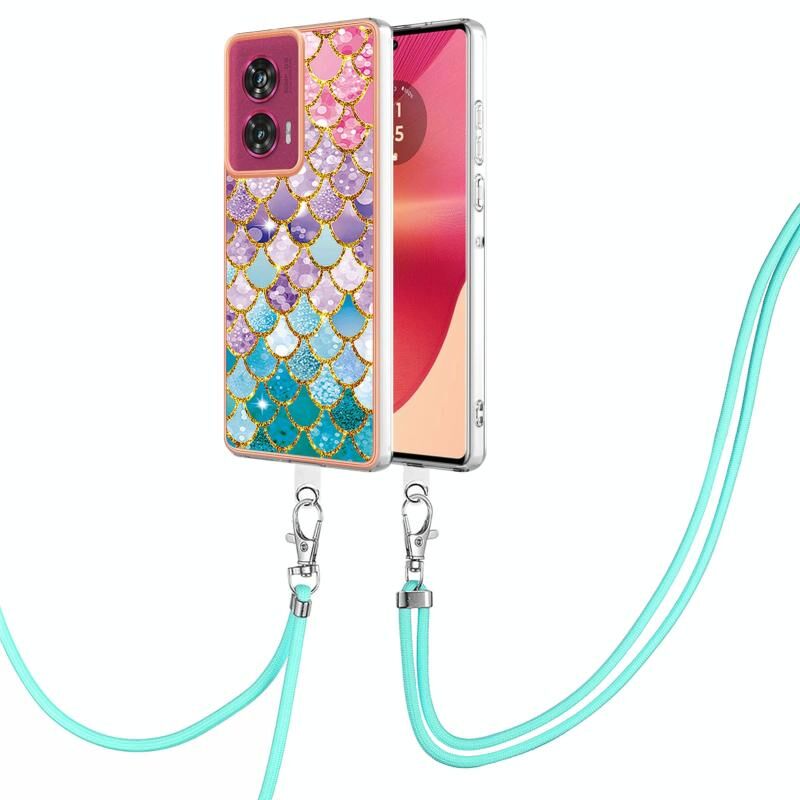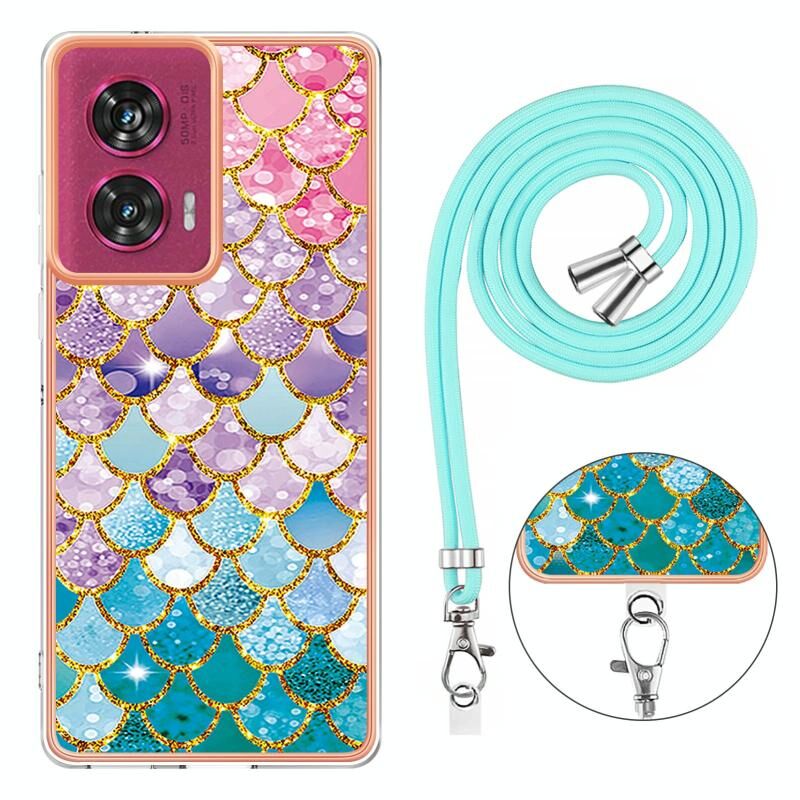 Θήκη προστασίας για Motorola Edge 50 Fusion με σχέδιο ηλεκτρολυτικής επιμετάλλωσης IMD TPU, ανθεκτική σε κρούσεις, με κορδόνι λαιμού (Πολύχρωμες Λέπια).