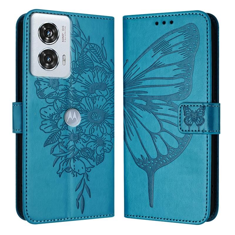 Για Motorola Edge 50 Fusion ανάγλυφη πεταλούδα δερμάτινη θήκη τηλεφώνου (μπλε)